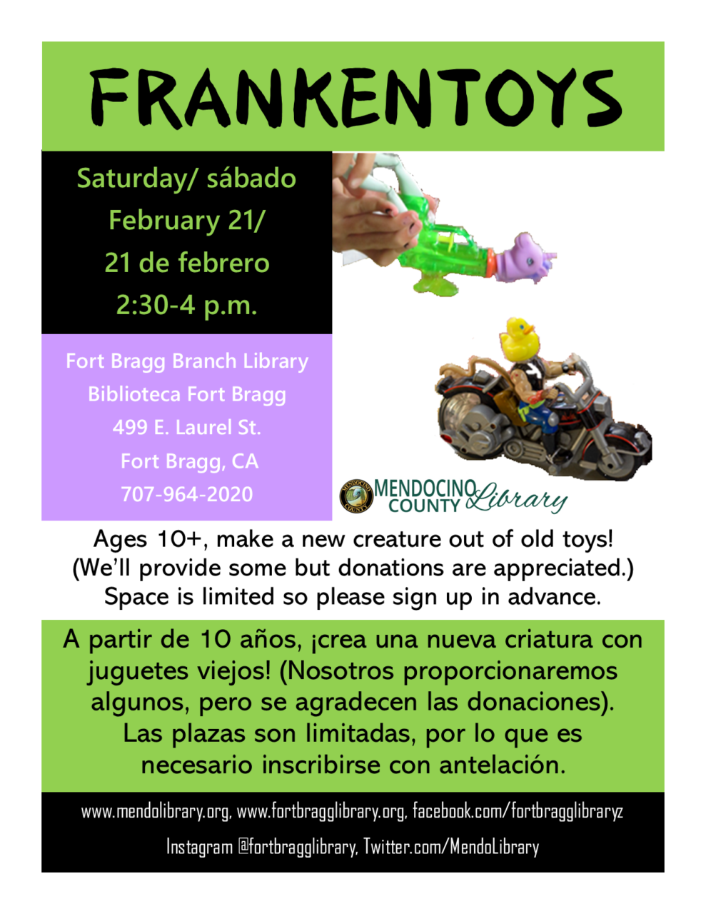 Ages 10+. Turn your old toy into a new toy. (some toys will be provided, but donations or toys brought from home are appreciated)