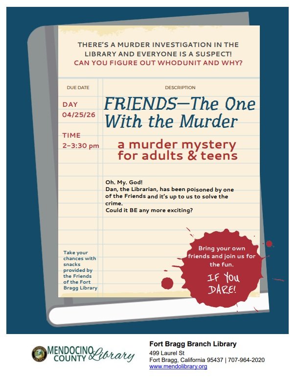 Take your chances with snacks provided by Friends of the Fort Bragg Library, if you dare.