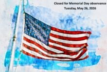 Tuesday Close for Memorial Day Observance