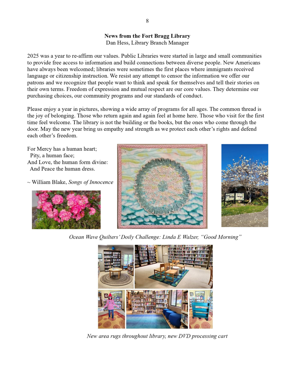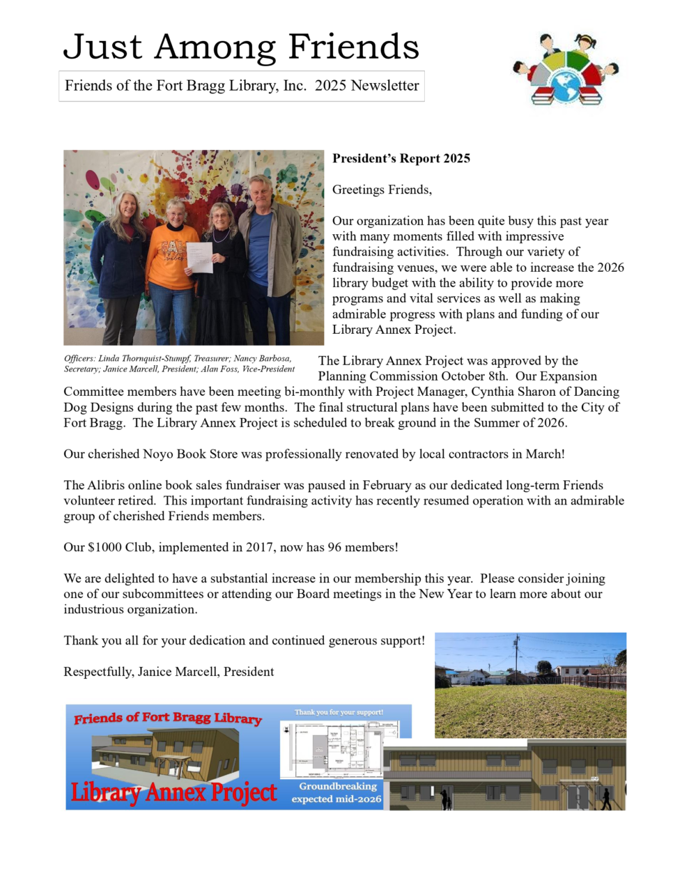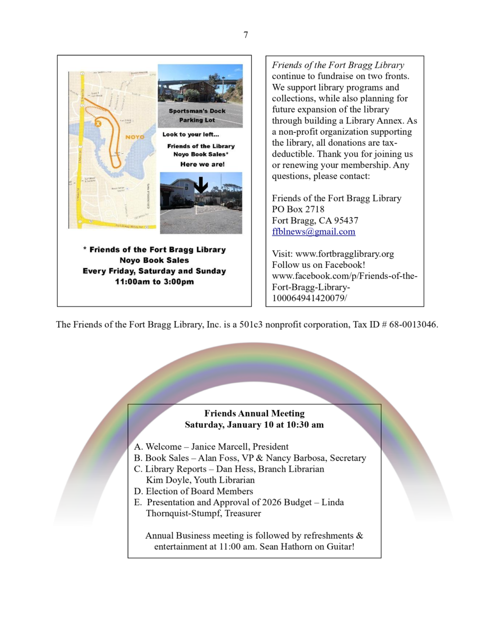 Friends of the Fort Bragg Library Annual Newsletter 2025