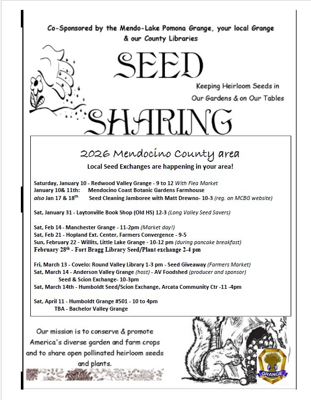 Don’t have any starts? Come on in anyway and select from the Fort Bragg Seed Library’s starts.
